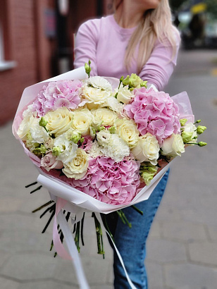 - одноголовая роза/гортензия/кустовая роза /эвкалипт/альстромерия/гвоздика/эустома